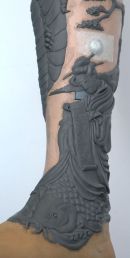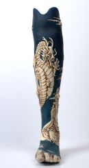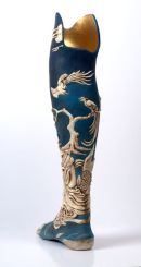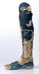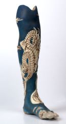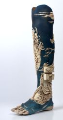 Using Japanese art & sculpture as a base for the design, these photographs show the progress of the sculpt in plastiline and the cast pieces finished to look like ivory (with 2 working drawers) on the final leg. Sophie de Oliveira Barata at 'The Alternative Limb Project' created the blue silicone skin & contemporary foot.